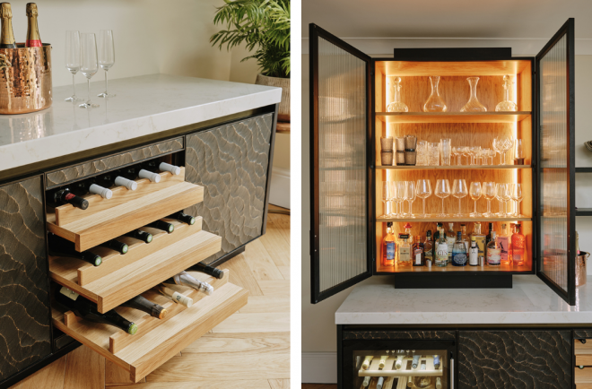 What could be better than strolling up to your home bar at the end of a long day and mixing up your favourite drink? Or entertaining friends and offering them a choice of perfectly chilled beverages rather than taking pot luck with what’s in the fridge? This is why so many people are opting for a home bar as part of their new kitchen, and why Charlie Smallbone, founder of Ledbury Studio, is being asked to include them in his designs more and more.