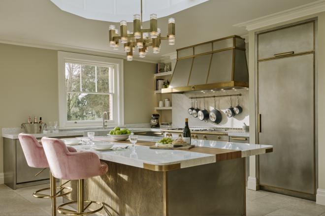 Ledbury Studio has elevated stainless steel from industrial to indulgent, marrying it with the warmth of aged brass, the richness of English walnut and the timeless elegance of Carrara marble. The result? A breathtakingly luxurious kitchen that exudes sophistication and charm.
