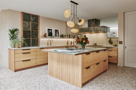 Our client wanted a large informal space for cooking and entertaining, and so decided to extend her kitchen in Camden into the garden beyond. She has a wonderful sense of style, and wanted to work with a kitchen company who could accommodate her design ideas in a practical and stylish way. She chose Ledbury Studio for the variety of materials and finishes we offer, and our willingness to collaborate with new ideas to create a very personal and bespoke design aesthetic.