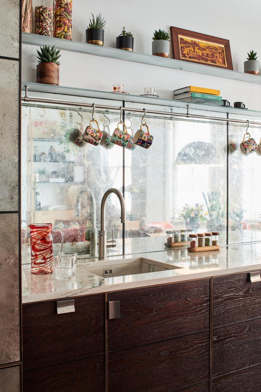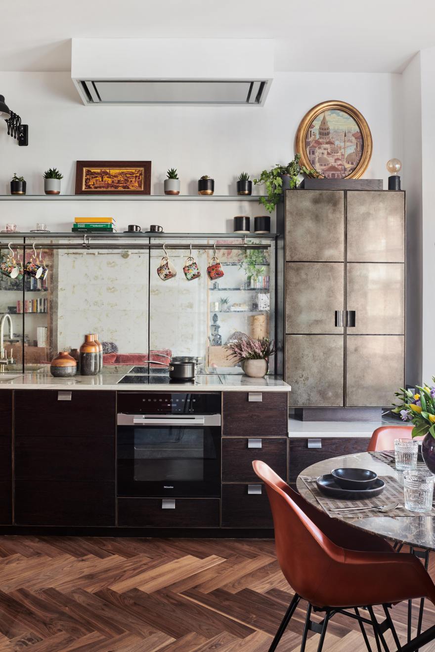 “Just because a kitchen is bijou, it doesn’t mean it can’t be big on style, and I think this project perfectly demonstrates this”, says Charlie. “We have hidden much of the functionality behind closed doors, meaning that all you can see is a collection of handmade pieces of furniture. So whether the family are dining at the table or lounging in the living room they always have a beautiful view”.