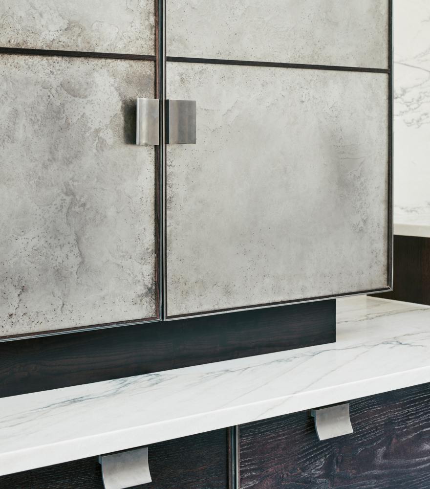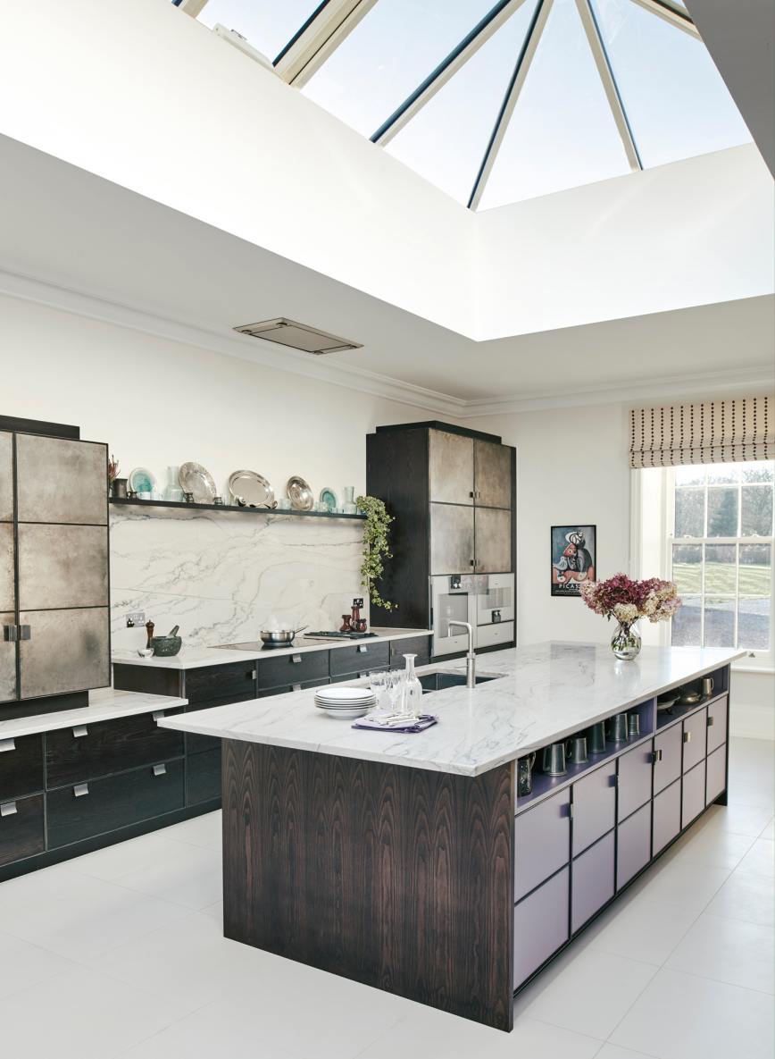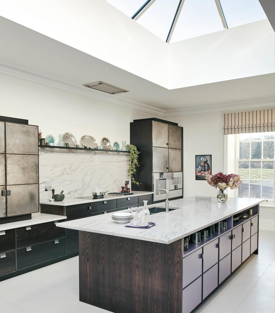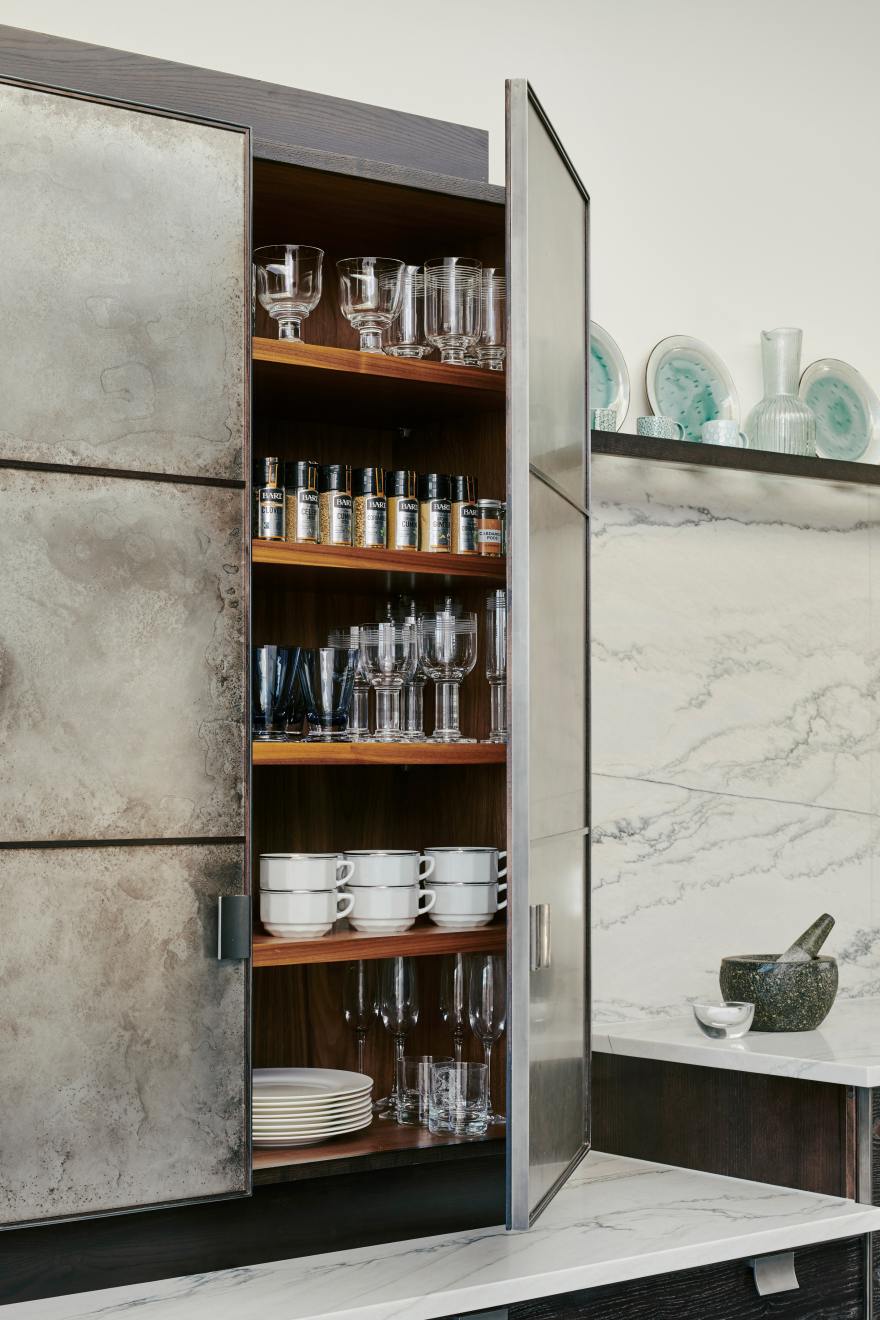 We wanted our pewter-ware collection to play a starring role in our new kitchen design. Therefore, we were so impressed when Charlie has created this stunning aged-pewter finish for the cupboard doors. He also incorporated special open shelving within the island unit and above the hob for our pewter pieces. As a result, the kitchen is a fabulous focal point for the regular social functions that we host. We particularly love how the kitchen has the feel of proper furniture that sits beautifully in our home.