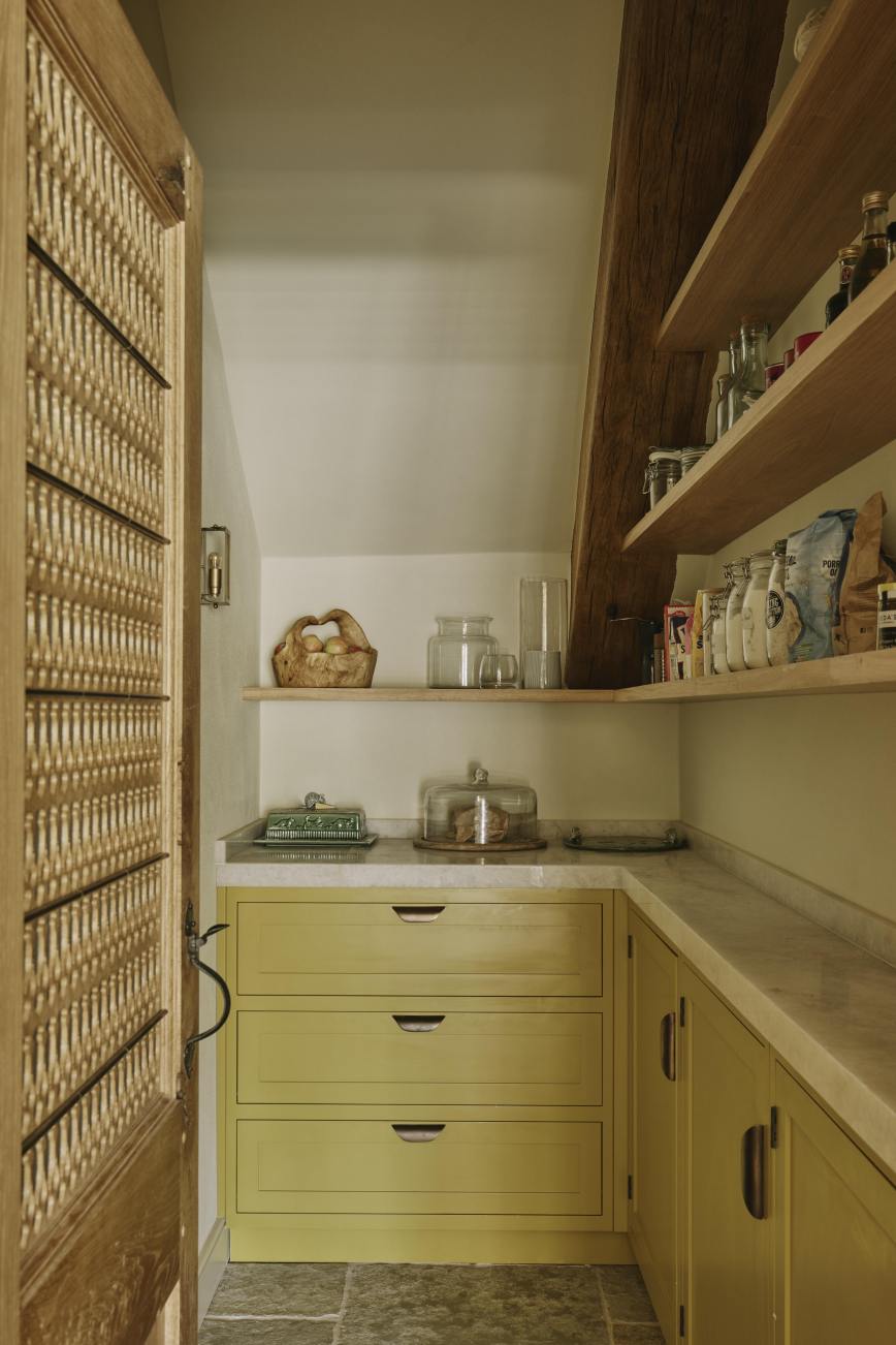Finally the walk in pantry is painted in Gui Octobre, a rich yellow, a very useful adjunct to the storage elsewhere in the kitchen.