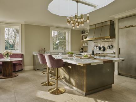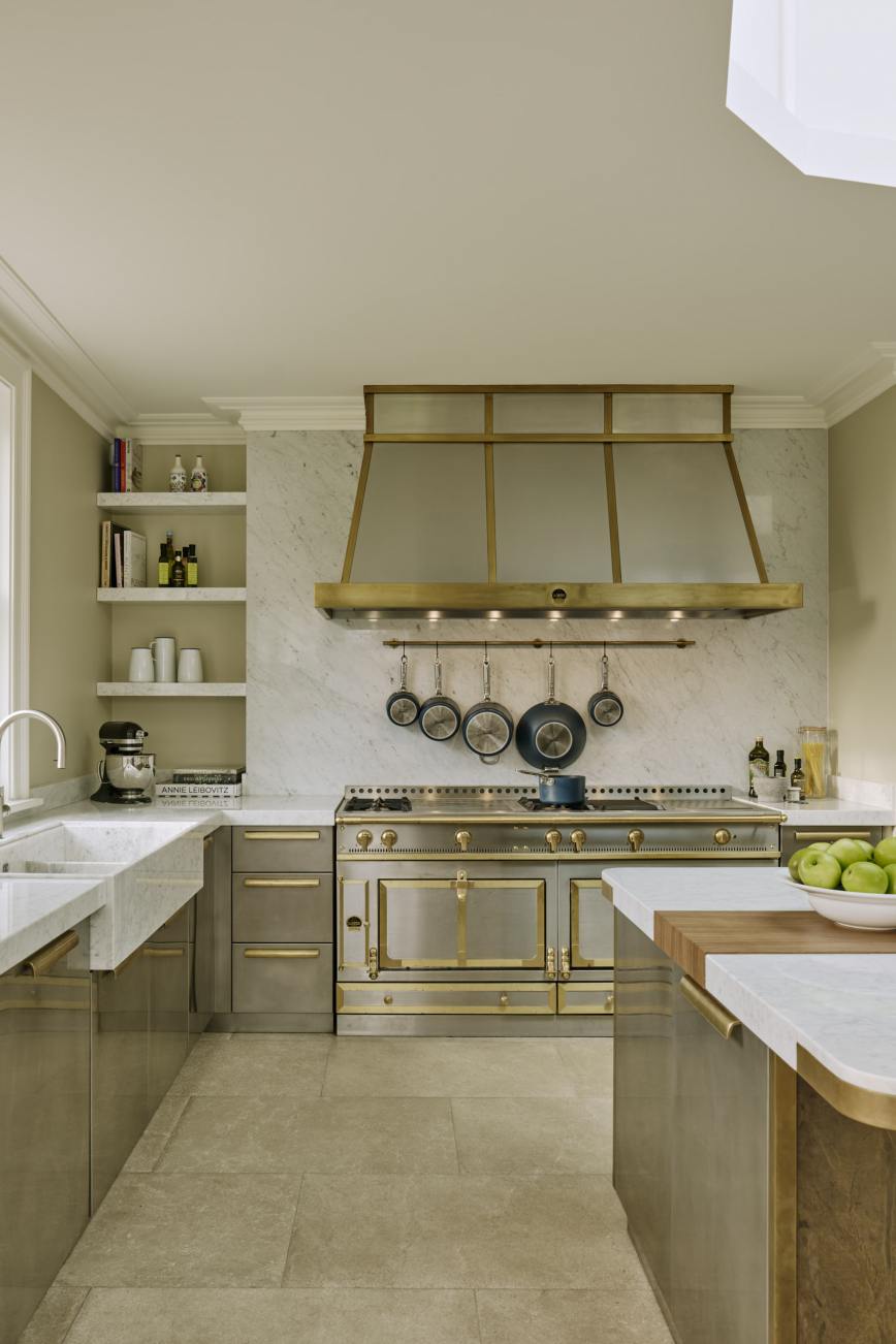 The high shine and antimicrobial qualities of stainless steel have long made it a practical choice for professional kitchens, but increasingly home chefs are seeing the value in this material too. Unlike a restaurant kitchen, its best seen in homes as part of a more varied material palette, think timber, marble, other metallic finishes. At Ledbury Studio we can vary the finish to achieve whatever design aesthetic is required, whether that is brushed stainless steel, aged and patinated, or polished to a mirror like sheen , contrasting the reflective expanse of metal with wooden cabinetry and other materials.