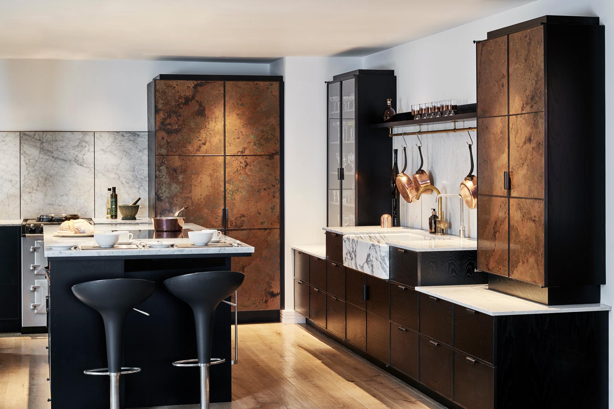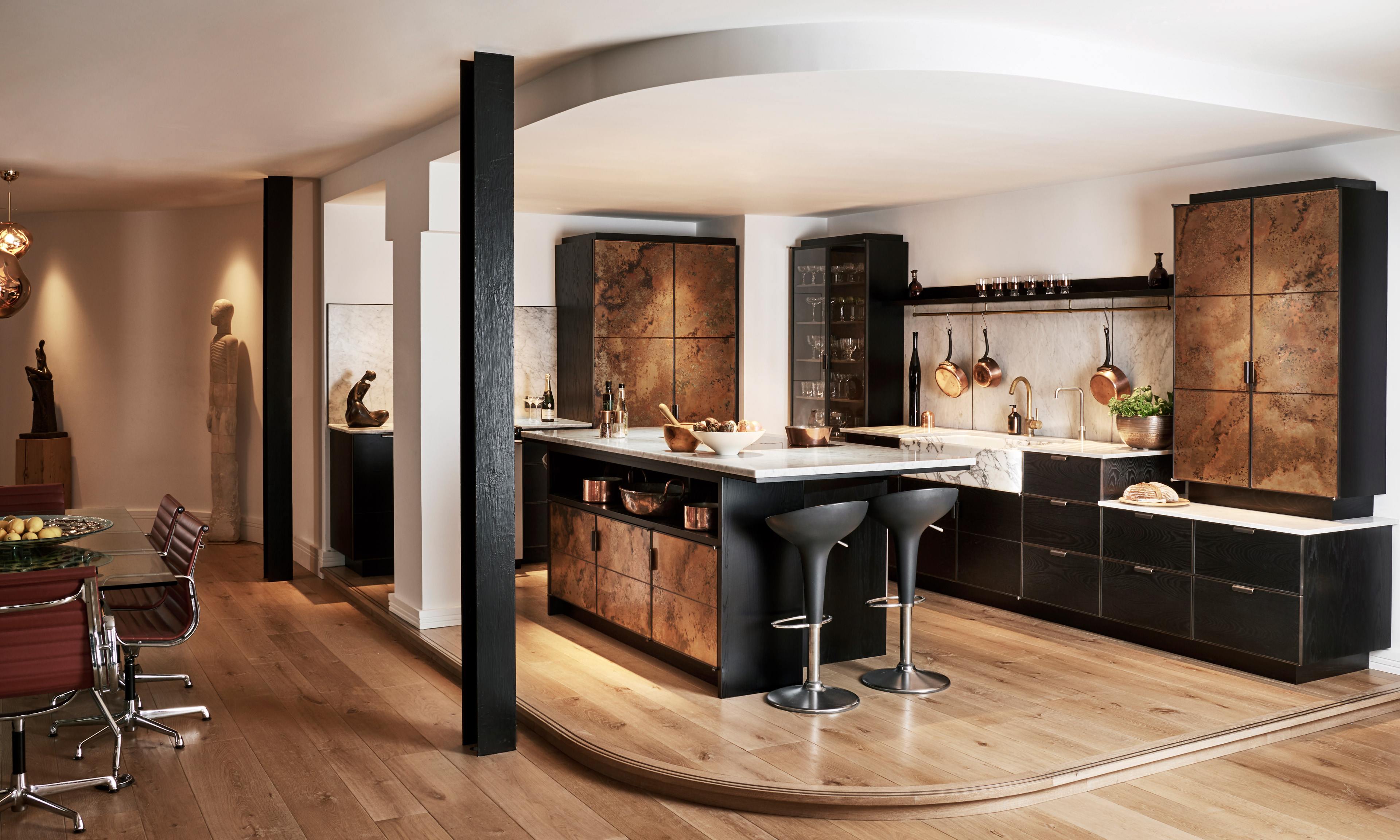 Our warehouse apartment has a large open-plan kitchen, dining and living area, and it was important that the kitchen wasn't just a purely functional space for cooking but a key part of furnishing the whole living area, to compliment the authenticity of our listed building. For us, this is something Ledbury Studio does better than anyone else. We gain enormous pleasure from Charlie’s use of beautifully crafted materials – the metal trims, brass hinges and copper panels give the kitchen both a distinctive and a sophisticated look. We needed a dramatic design and once we had seen the Ledbury kitchen, there was only ever one choice.